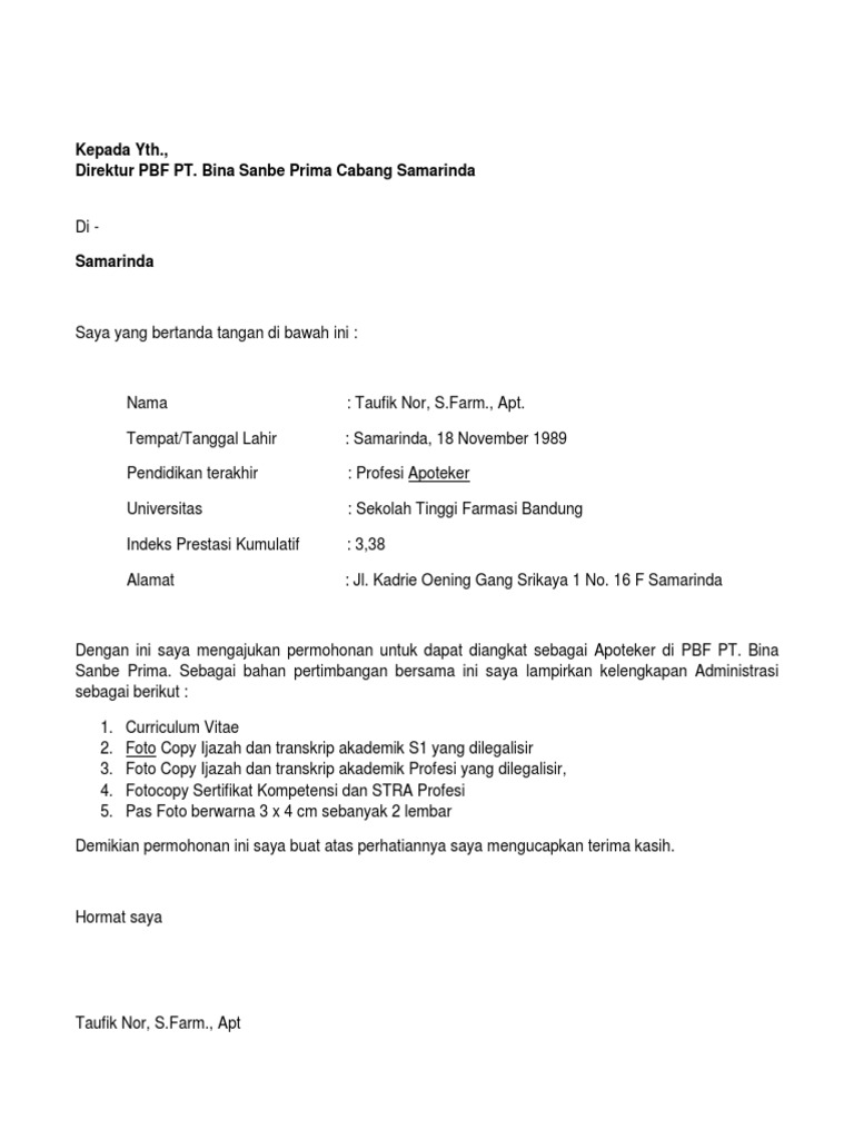 Saya senang untuk belajar dan juga dapat mekerja secara mandiri maupun. Contoh lamaran pt cpb : Seperti yang sudah kita bahas diatas, tentunya kamu harus memiliki nama alamat email yang contoh ini adalah surat lamaran simple dan tidak bertele tele. Contoh surat lamaran kerja di pt. Terdapat beberapa perbedaan surat lamaran cpns antara lulusan sarjana, d3, dan sma (sederajat). Contoh surat lamaran kerja di pt tulis tangan. Salah satu informasi yang paling sering dicari di internet adalah informasi lowongan pekerjaan. Kumpulan contoh surat lamaran kerja terbaru yang baik dan benar yang bisa kamu jadikan sebagai referensi pembuatan surat lamaran kerjamu lengkap+doc + pdf. Contohh surat lamaran kerja doc. Surat lamaran kerja di pt. Contoh surat lamaran kerja adalah suatu hal yang sangat dibutuhkan oleh para orang yang sedang mencari pekerjaan yang sesuai dengan keinginannya. Disetiap contoh surat lamaran kerja juga sudah saya berikan doc yang bisa anda unduh dan anda edit sendiri agar sesuai dengan yang anda inginkan. Surat kerja di mayora indah tbk suratlamaran com suzuya mall banda aceh.